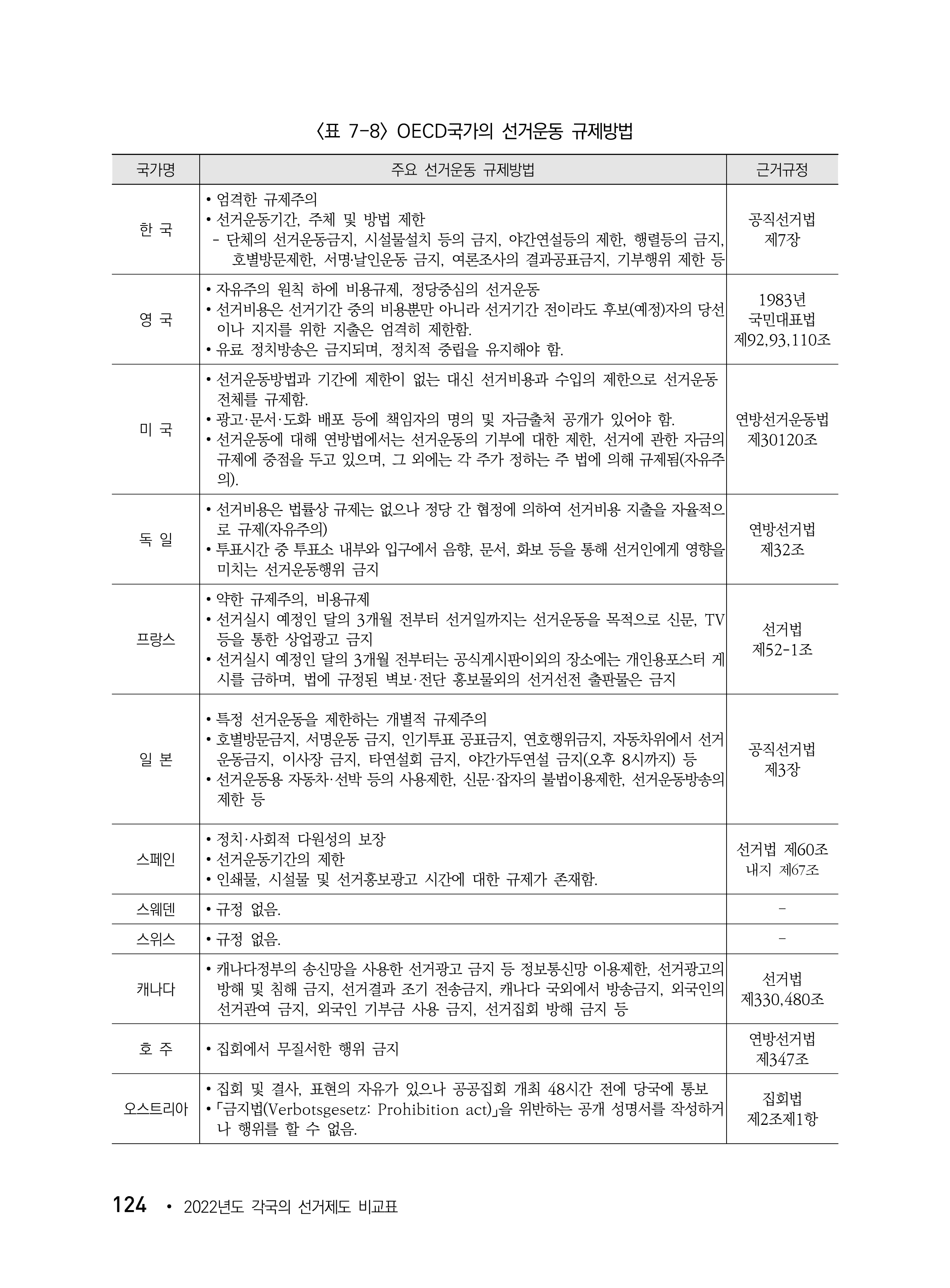 - 우리나라는 아무리 좋은 아이디어가 있어도 선거법에서 허용하지 않는 방법은 할 수 없는 엄격한 규제주의를 택하고 있습니다.